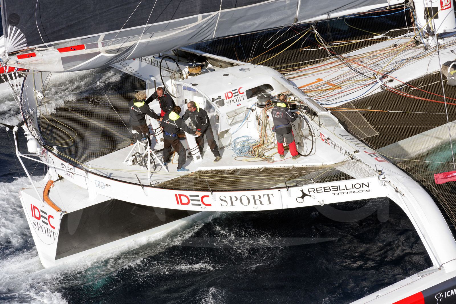 | Description | OFF BELLE-ILE EN MER, FRANCE - SEPTEMBER 18: French skipper Francis Joyon is training on his Maxi Trimaran IDEC Sport with his crew, Christophe Houdet, Bertrand Delesne, Corentin Joyon and Antoine Blouet, prior to their Asian Tour next winter on September 18, 2019, off Belle-Ile en Mer, France. (Photo by Francois Van Malleghem/Alea) |