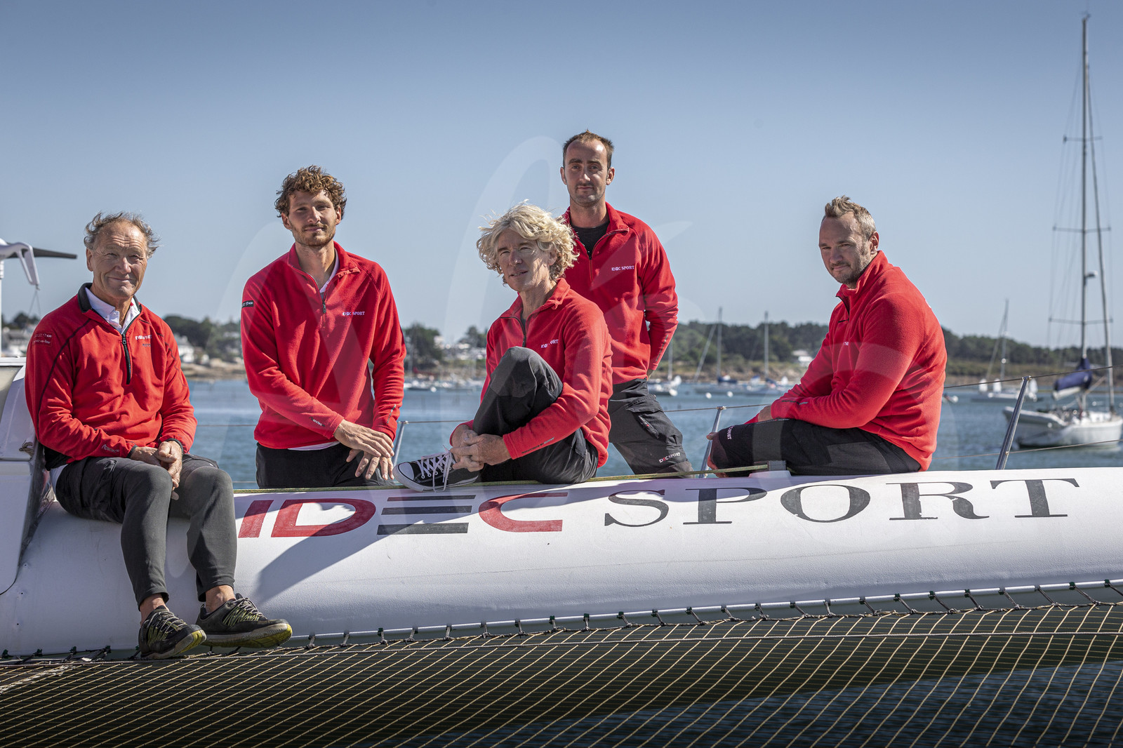 | Description | OFF BELLE-ILE EN MER, FRANCE - SEPTEMBER 18: French skipper Francis Joyon and his crew members, from L to R : Francis Joyon, Corentin Joyon, Christophe Houdet, Antoine Blouet and Bertrand Delesne, are back from training onboard the Maxi Trimaran IDEC Sport, prior to their Asian Tour next winter on September 18, 2019, off Belle-Ile en Mer, France. (Photo by Jean-Marie Liot/Alea) |
