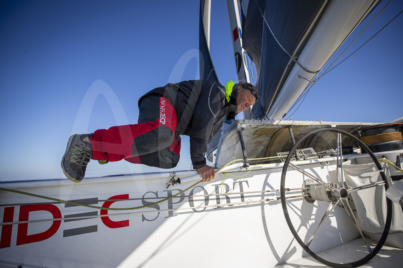 | Description | OFF BELLE-ILE EN MER, FRANCE - SEPTEMBER 18: French skipper Francis Joyon is training onboard the Maxi Trimaran IDEC Sport with his crew, prior to their Asian Tour next winter on September 18, 2019, off Belle-Ile en Mer, France. (Photo by Jean-Marie Liot/Alea) |