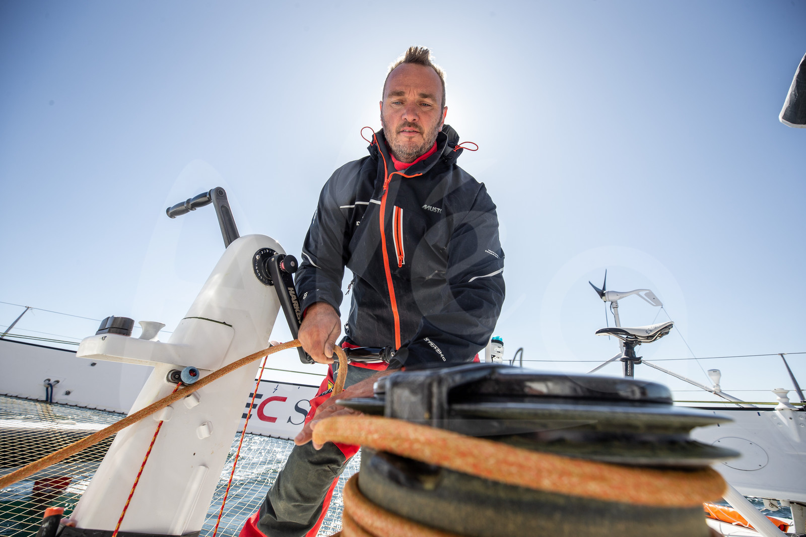 | Description | OFF BELLE-ILE EN MER, FRANCE - SEPTEMBER 18: French skipper Francis Joyon is training onboard the Maxi Trimaran IDEC Sport with his crew, prior to their Asian Tour next winter on September 18, 2019, off Belle-Ile en Mer, France. Here crew member Bertrand Delesne. (Photo by Jean-Marie Liot/Alea) |