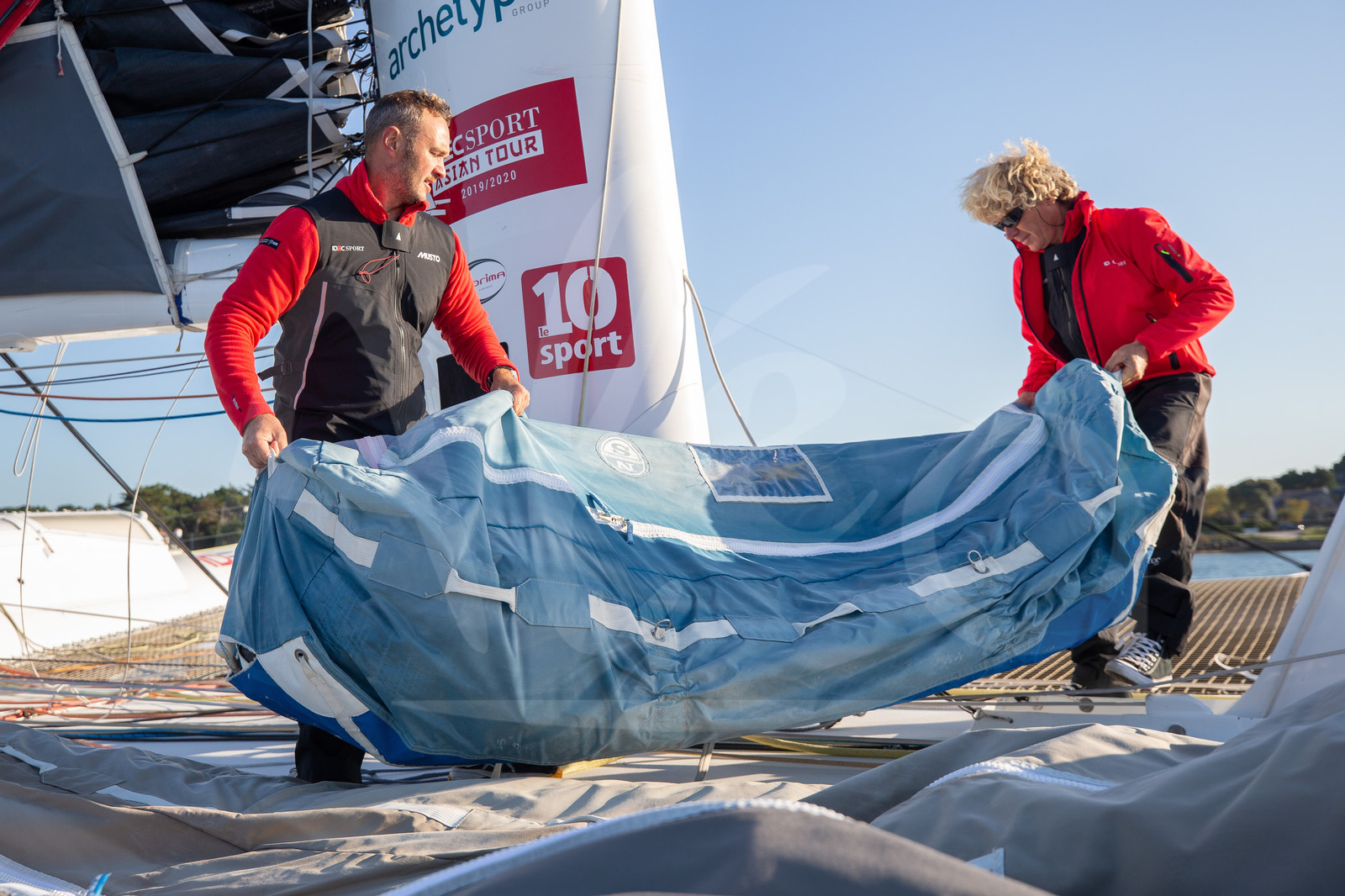 | Description | OFF BELLE-ILE EN MER, FRANCE - SEPTEMBER 18: French skipper Francis Joyon is training onboard the Maxi Trimaran IDEC Sport with his crew, Corentin Joyon, Bertrand Delesne Antoine Blouet and boat captain Christophe Houdet, prior to their Asian Tour next winter on September 18, 2019, off Belle-Ile en Mer, France. (Photo by Jean-Marie Liot/Alea) |