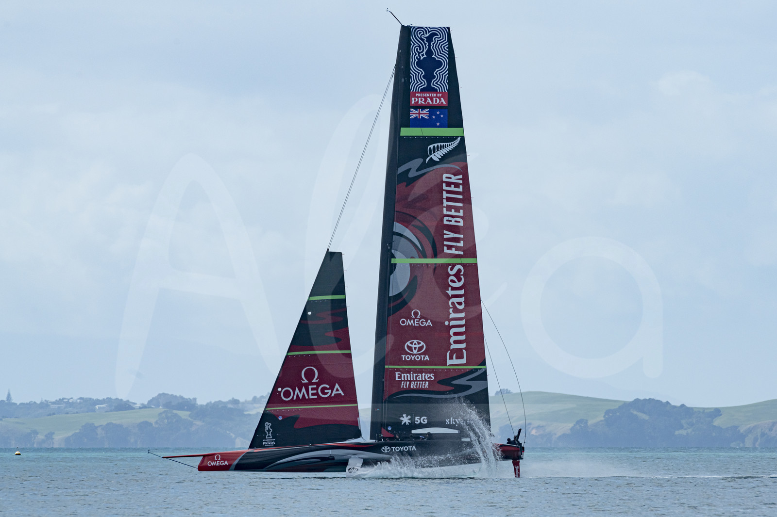 | Description | AUCKLAND, NEW ZEALAND - OCTOBER 4: Emirates Team New Zealand is testing their AC75 foiling monohull "The Aihe"on the Hauraki Gulf off Auckland, on October 4, 2019. ETNZ is training for the America's Cup 2021. (Photo by Chris Cameron/Alea) |