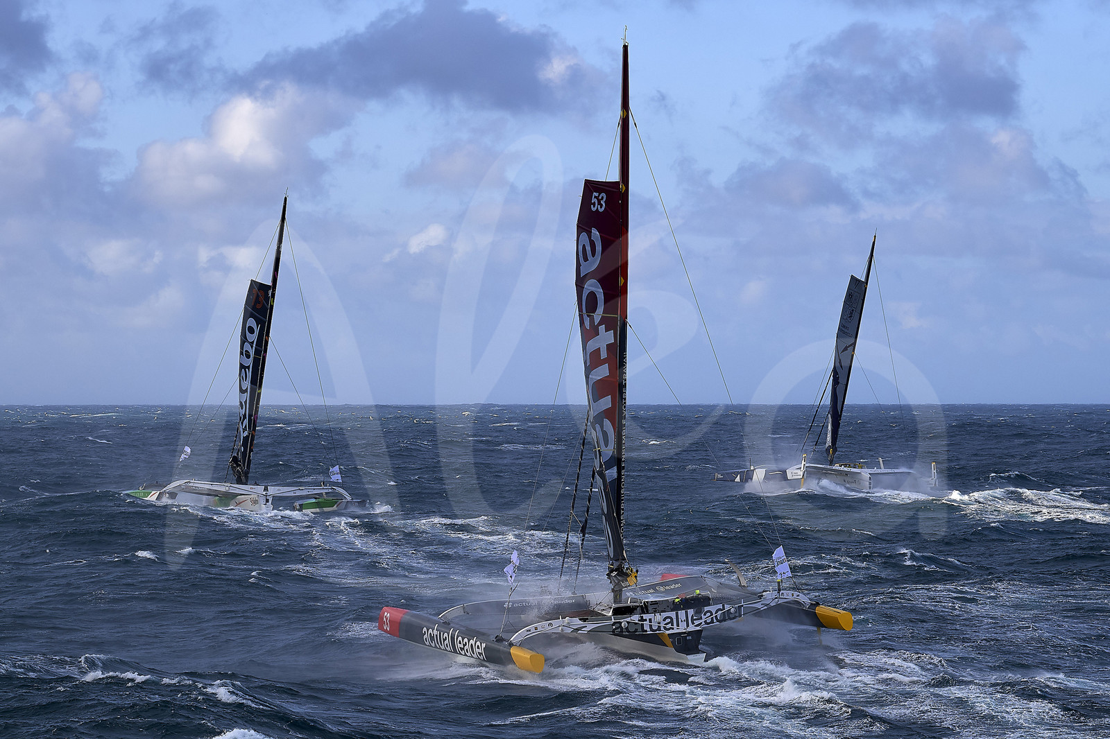 | Description | BREST, FRANCE - NOVEMBER 05: Actual Leader, Sodebo Ultim 3 and Maxi Edmond de Rothschild are taking the start of the Brest Atlantiques duo sailing race on November 5, 2019 in Brest, France. Brest Atlantiques is reserved to Class Ultim 32/23, from Brest to Brest, via waypoints off Rio de Janeiro and Cape Town, without any stop. (Photo by Yvan Zedda/Alea) |