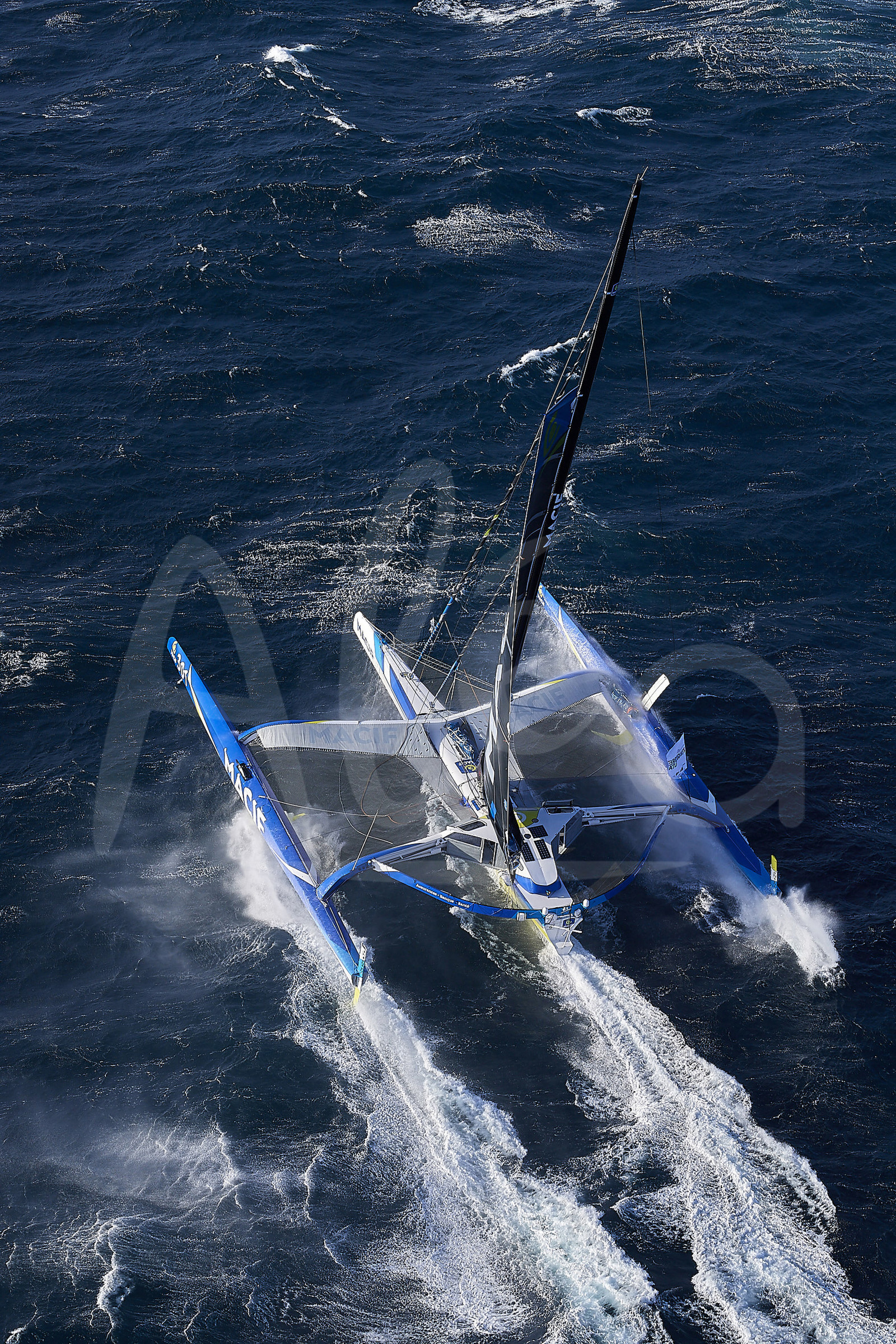 | Description | BREST, FRANCE - NOVEMBER 05: Trimaran MACIF is taking the start of the Brest Atlantiques duo sailing race on November 5, 2019 in Brest, France. Brest Atlantiques is reserved to Class Ultim 32/23, from Brest to Brest, via waypoints off Rio de Janeiro and Cape Town, without any stop. (Photo by Yvan Zedda/Alea) |