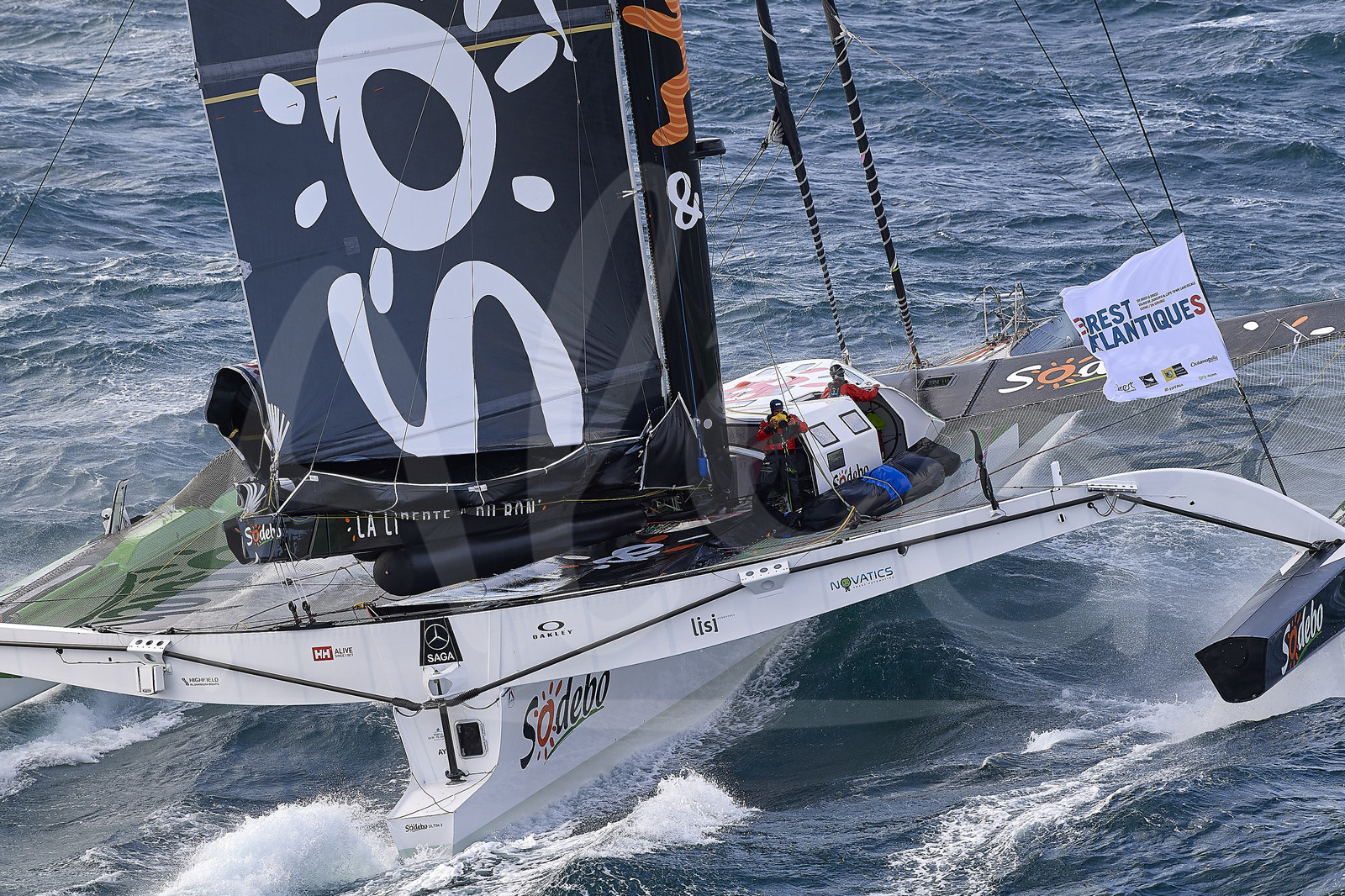 | Description | BREST, FRANCE - NOVEMBER 05: Sodebo Ultim 3 is taking the start of the Brest Atlantiques duo sailing race on November 5, 2019 in Brest, France. Brest Atlantiques is reserved to Class Ultim 32/23, from Brest to Brest, via waypoints off Rio de Janeiro and Cape Town, without any stop. (Photo by Yvan Zedda/Alea) |