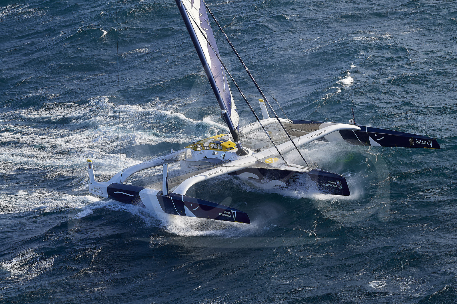 | Description | BREST, FRANCE - NOVEMBER 05: Maxi Edmond de Rothschild is taking the start of the Brest Atlantiques duo sailing race on November 5, 2019 in Brest, France. Brest Atlantiques is reserved to Class Ultim 32/23, from Brest to Brest, via waypoints off Rio de Janeiro and Cape Town, without any stop. (Photo by Yvan Zedda/Alea) |