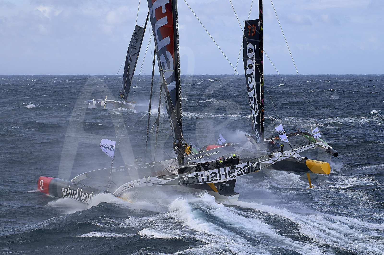| Description | BREST, FRANCE - NOVEMBER 05: Actual Leader and Maxi Edmond de Rothschild are taking the start of the Brest Atlantiques duo sailing race on November 5, 2019 in Brest, France. Brest Atlantiques is reserved to Class Ultim 32/23, from Brest to Brest, via waypoints off Rio de Janeiro and Cape Town, without any stop. (Photo by Yvan Zedda/Alea) |