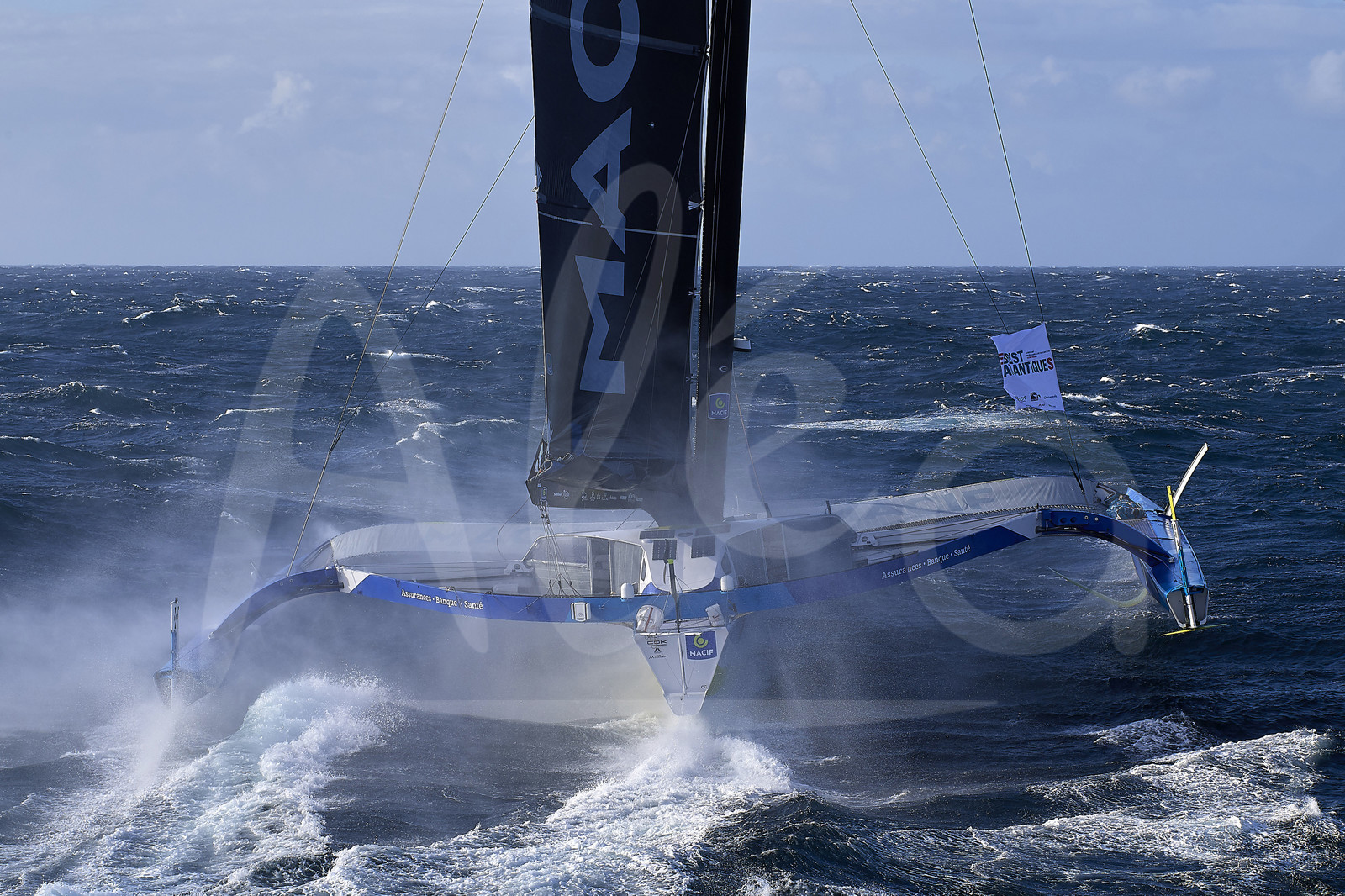 | Description | BREST, FRANCE - NOVEMBER 05: Trimaran MACIF is taking the start of the Brest Atlantiques duo sailing race on November 5, 2019 in Brest, France. Brest Atlantiques is reserved to Class Ultim 32/23, from Brest to Brest, via waypoints off Rio de Janeiro and Cape Town, without any stop. (Photo by Yvan Zedda/Alea) |