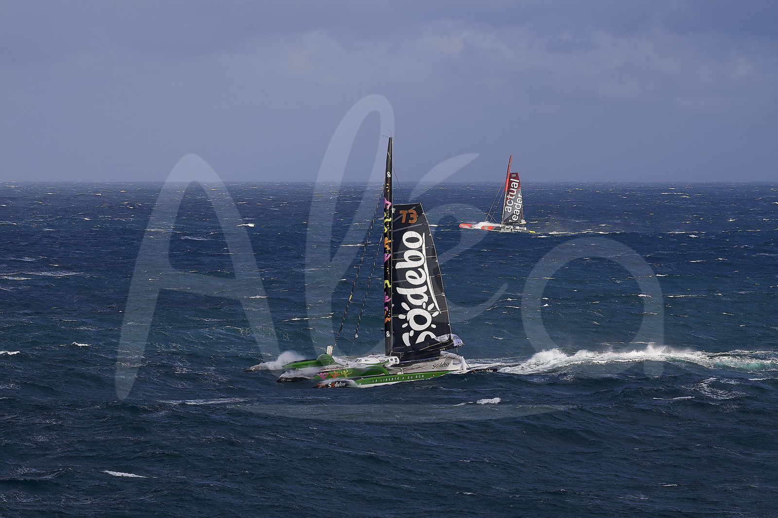 | Description | BREST, FRANCE - NOVEMBER 05: Sodebo Ultim 3 and Actual Leader are taking the start of the Brest Atlantiques duo sailing race on November 5, 2019 in Brest, France. Brest Atlantiques is reserved to Class Ultim 32/23, from Brest to Brest, via waypoints off Rio de Janeiro and Cape Town, without any stop. (Photo by Yvan Zedda/Alea) |
