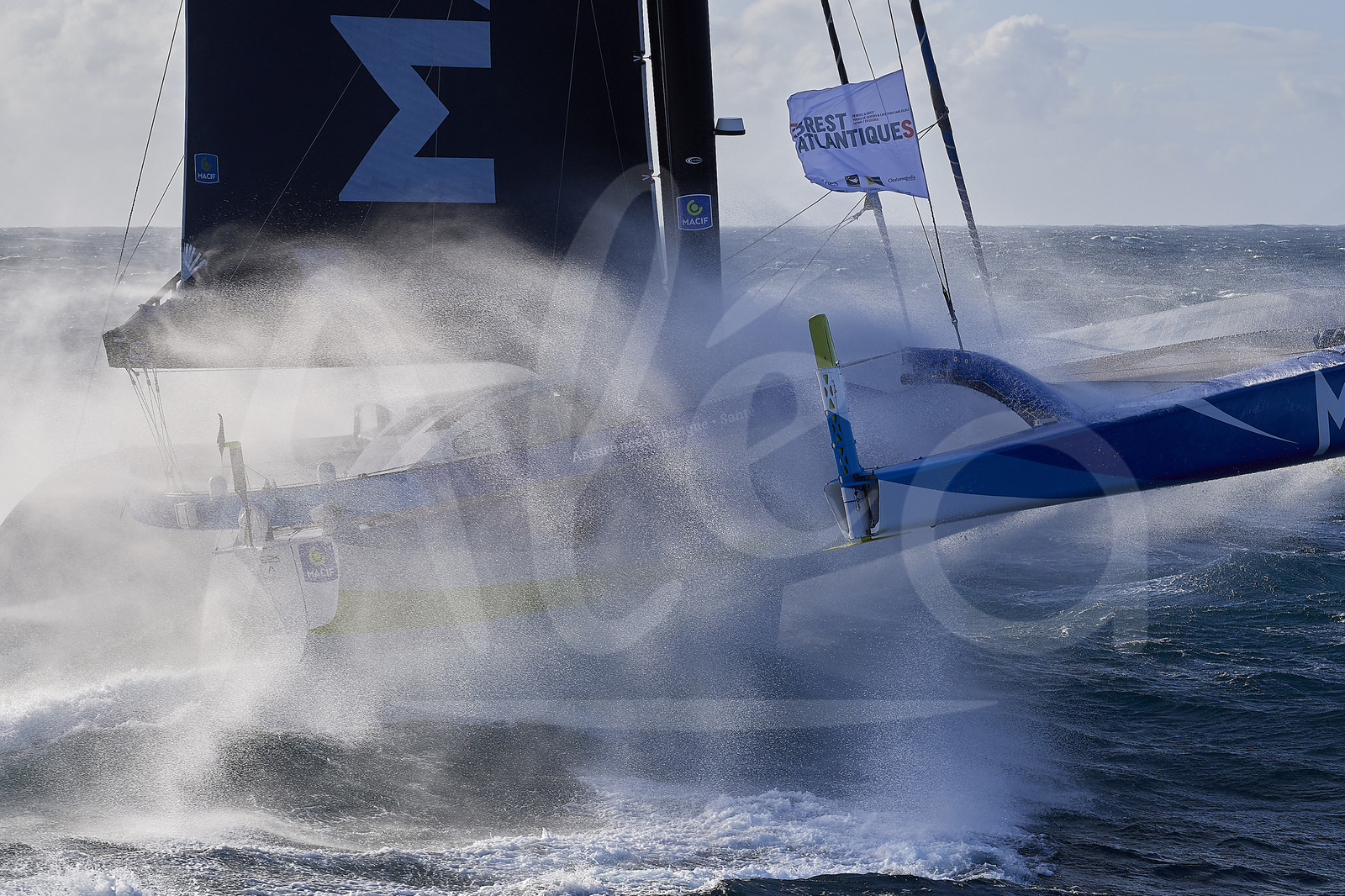 | Description | BREST, FRANCE - NOVEMBER 05: Trimaran MACIF is taking the start of the Brest Atlantiques duo sailing race on November 5, 2019 in Brest, France. Brest Atlantiques is reserved to Class Ultim 32/23, from Brest to Brest, via waypoints off Rio de Janeiro and Cape Town, without any stop. (Photo by Yvan Zedda/Alea) |