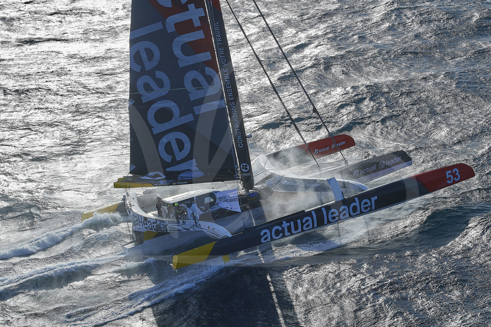 | Description | BREST, FRANCE - NOVEMBER 05: Actual Leader is taking the start of the Brest Atlantiques duo sailing race on November 5, 2019 in Brest, France. Brest Atlantiques is reserved to Class Ultim 32/23, from Brest to Brest, via waypoints off Rio de Janeiro and Cape Town, without any stop. (Photo by Yvan Zedda/Alea) |
