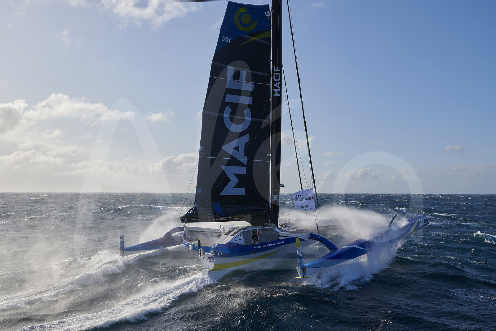 | Description | BREST, FRANCE - NOVEMBER 05: Trimaran MACIF is taking the start of the Brest Atlantiques duo sailing race on November 5, 2019 in Brest, France. Brest Atlantiques is reserved to Class Ultim 32/23, from Brest to Brest, via waypoints off Rio de Janeiro and Cape Town, without any stop. (Photo by Yvan Zedda/Alea) |