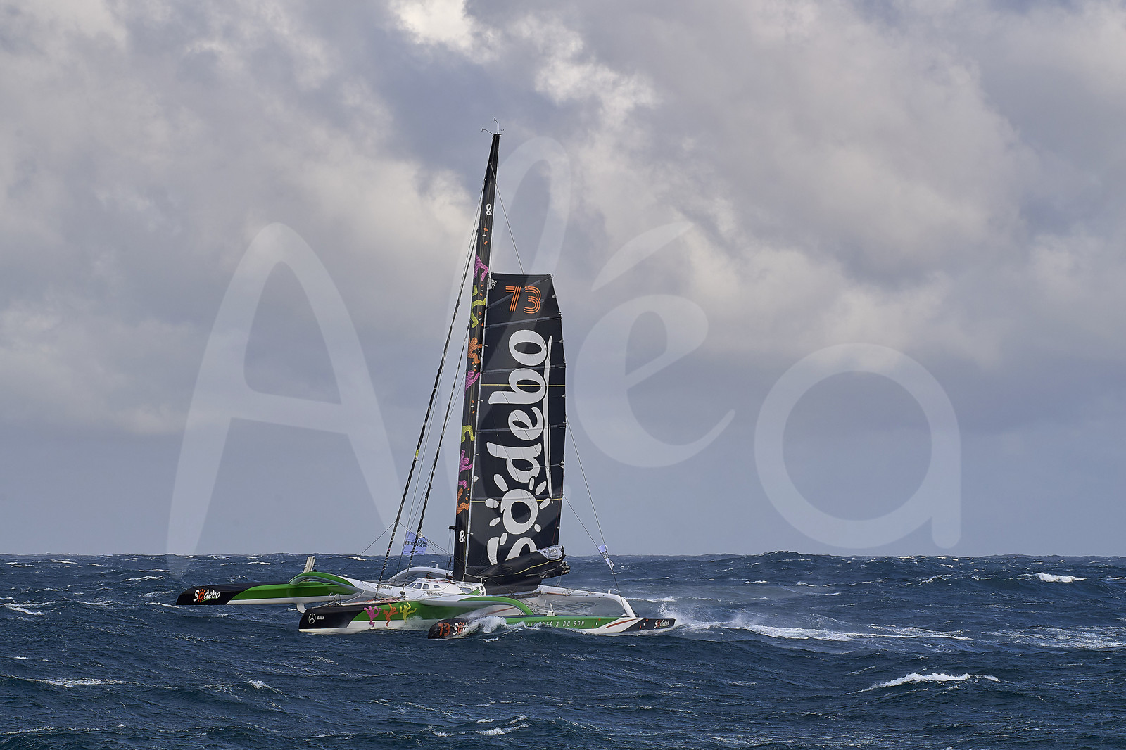 | Description | BREST, FRANCE - NOVEMBER 05: Sodebo Ultim 3 is taking the start of the Brest Atlantiques duo sailing race on November 5, 2019 in Brest, France. Brest Atlantiques is reserved to Class Ultim 32/23, from Brest to Brest, via waypoints off Rio de Janeiro and Cape Town, without any stop. (Photo by Yvan Zedda/Alea) |