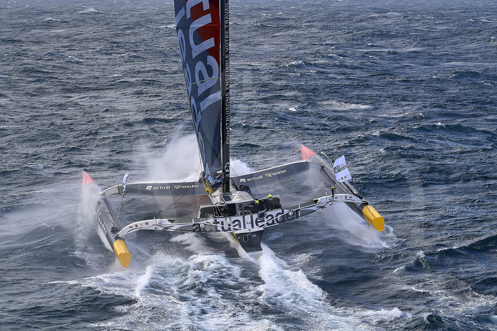 | Description | BREST, FRANCE - NOVEMBER 05: Actual Leader is taking the start of the Brest Atlantiques duo sailing race on November 5, 2019 in Brest, France. Brest Atlantiques is reserved to Class Ultim 32/23, from Brest to Brest, via waypoints off Rio de Janeiro and Cape Town, without any stop. (Photo by Yvan Zedda/Alea) |