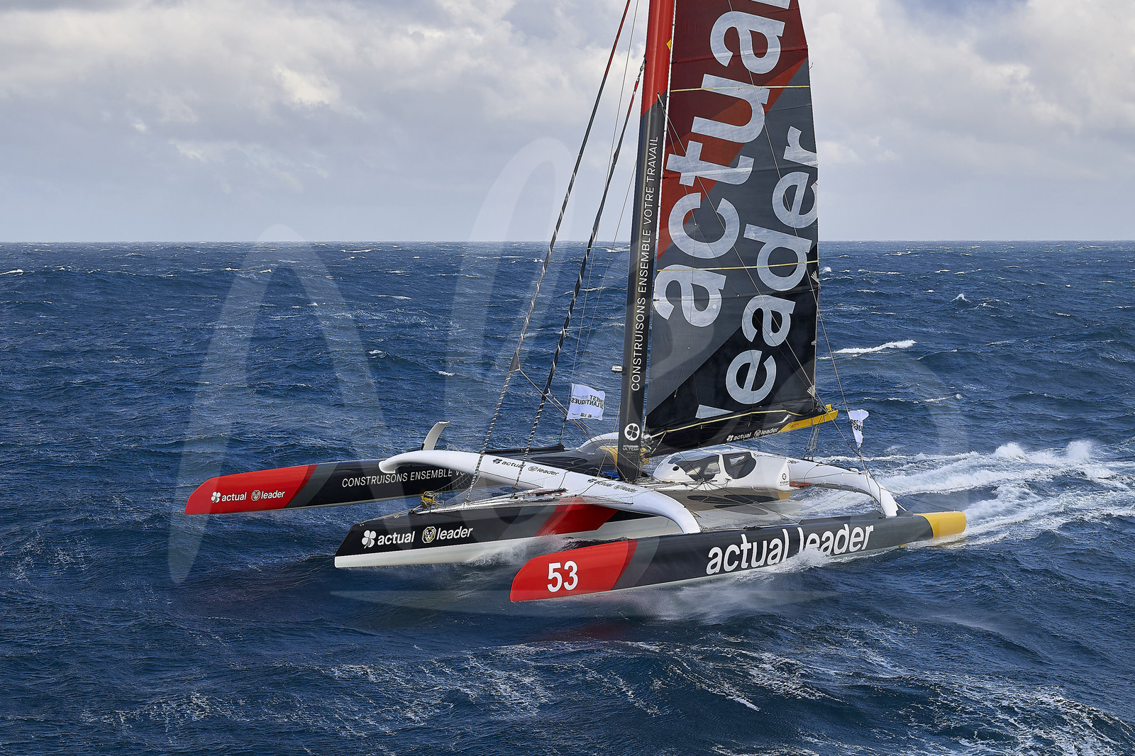 | Description | BREST, FRANCE - NOVEMBER 05: Actual Leader and Sodebo Ultim 3 are taking the start of the Brest Atlantiques duo sailing race on November 5, 2019 in Brest, France. Brest Atlantiques is reserved to Class Ultim 32/23, from Brest to Brest, via waypoints off Rio de Janeiro and Cape Town, without any stop. (Photo by Yvan Zedda/Alea) |