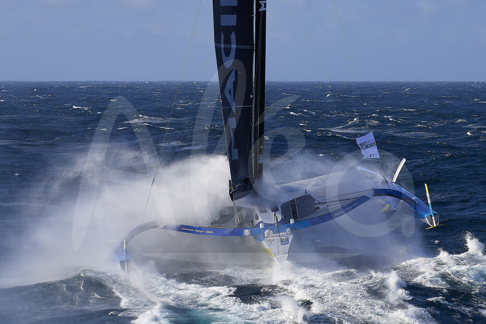 | Description | BREST, FRANCE - NOVEMBER 05: Trimaran MACIF is taking the start of the Brest Atlantiques duo sailing race on November 5, 2019 in Brest, France. Brest Atlantiques is reserved to Class Ultim 32/23, from Brest to Brest, via waypoints off Rio de Janeiro and Cape Town, without any stop. (Photo by Yvan Zedda/Alea) |