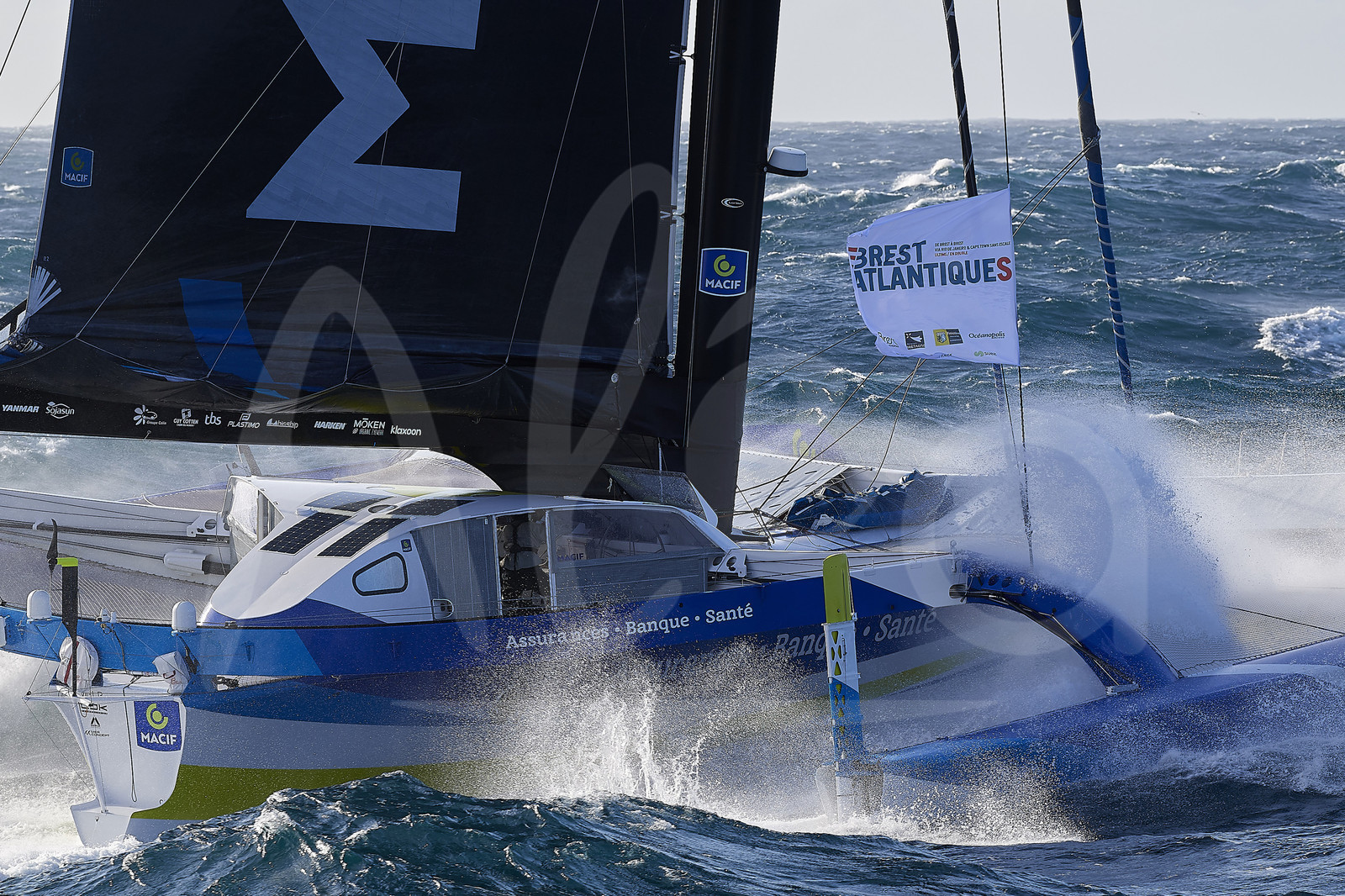 | Description | BREST, FRANCE - NOVEMBER 05: Trimaran MACIF is taking the start of the Brest Atlantiques duo sailing race on November 5, 2019 in Brest, France. Brest Atlantiques is reserved to Class Ultim 32/23, from Brest to Brest, via waypoints off Rio de Janeiro and Cape Town, without any stop. (Photo by Yvan Zedda/Alea) |