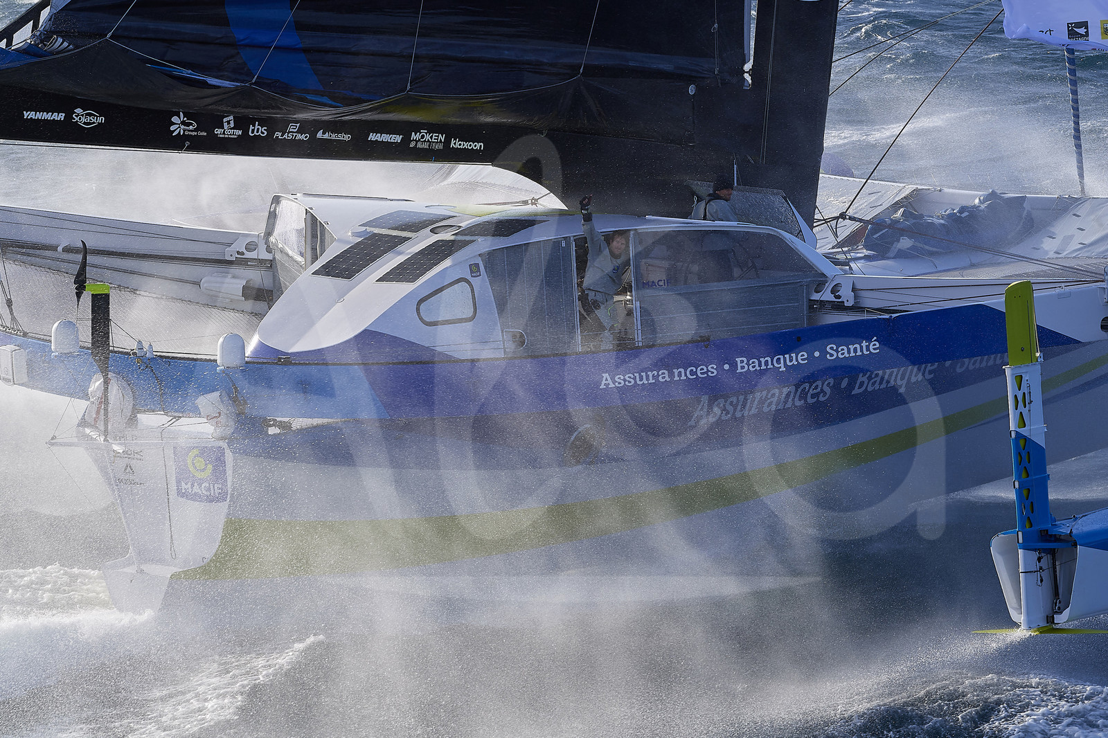 | Description | BREST, FRANCE - NOVEMBER 05: Trimaran MACIF skipper Francois Gabart is waving at photographer while taking the start of the Brest Atlantiques duo sailing race on November 5, 2019 in Brest, France. Brest Atlantiques is reserved to Class Ultim 32/23, from Brest to Brest, via waypoints off Rio de Janeiro and Cape Town, without any stop. (Photo by Yvan Zedda/Alea) |