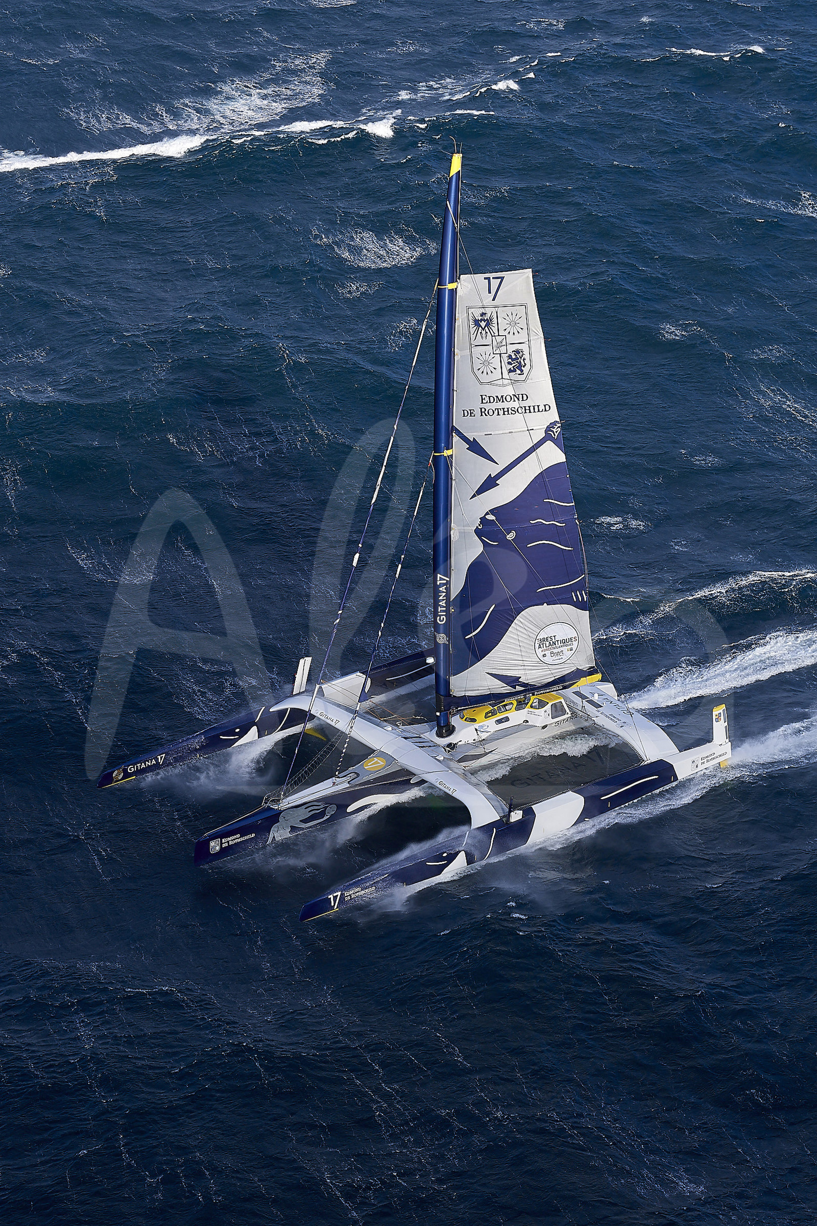 | Description | BREST, FRANCE - NOVEMBER 05: Maxi Edmond de Rothschild is taking the start of the Brest Atlantiques duo sailing race on November 5, 2019 in Brest, France. Brest Atlantiques is reserved to Class Ultim 32/23, from Brest to Brest, via waypoints off Rio de Janeiro and Cape Town, without any stop. (Photo by Yvan Zedda/Alea) |