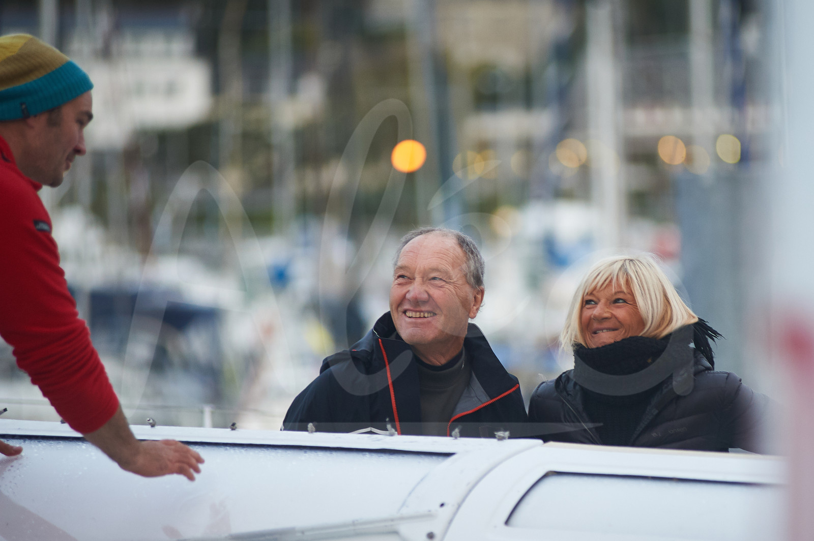 | Description | LA TRINITE SUR MER, FRANCE - OCTOBER 19: Maxi trimaran IDEC Sport French skipper Francis Joyon is talking with his wife Virginie prior to begin his Asian Tour with "La Mauricienne" record breaking attempt from Port Louis, South Brittany, to Port Louis, Mauritius, on October 19, 2019, in La Trinite sur Mer, France. (Photo by Martin Coudriet/Alea) |