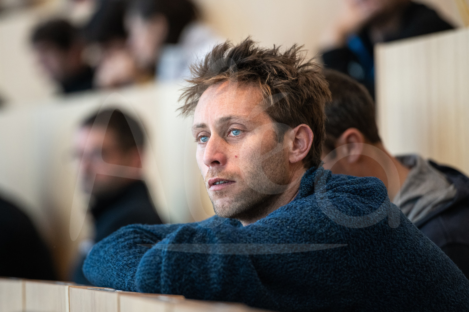 | Description | LE HAVRE, FRANCE - OCTOBER 26: Skipper Ian Lipinski is attending the start's briefing during pre-start of the Transat Jacques Vabre 2019, duo sailing race from Le Havre, France, to Salvador de Bahia, Brazil, on October 26, 2019 in Le Havre, France. (Photo by Jean-Louis Carli/Alea) |