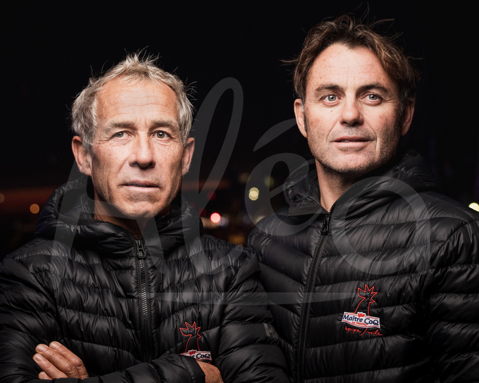 | Description | LE HAVRE, FRANCE - OCTOBER 23: Imoca Maitre Coq skippers Yannick Bestaven and Roland Jourdain are posing for an exhibition portrait during pre-start of the Transat Jacques Vabre 2019, duo sailing race from Le Havre, France, to Salvador de Bahia, Brazil, on October 23, 2019 in Le Havre, France. (Photo by Jean-Louis Carli/Alea) |