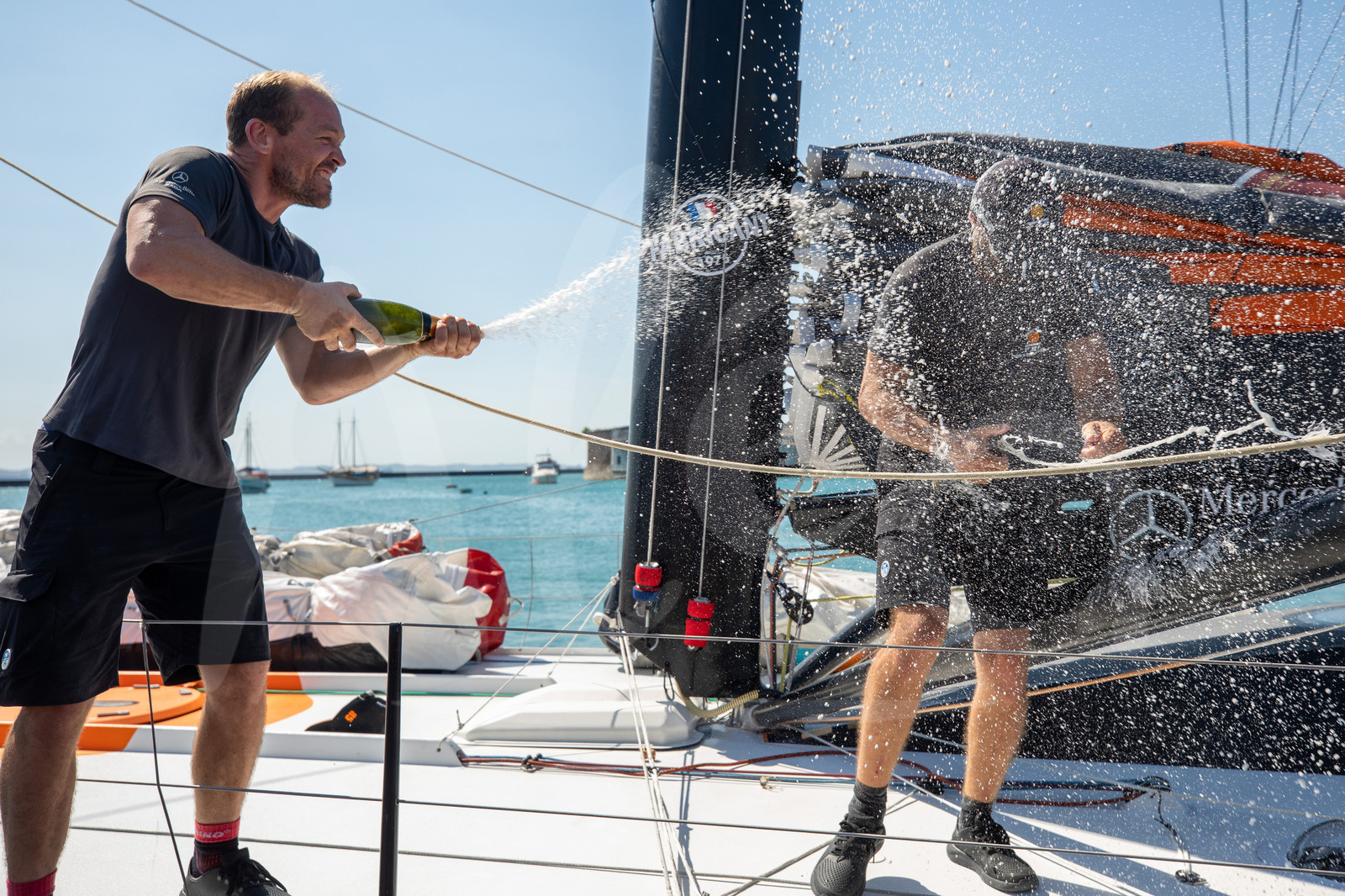 | Description | SALVADOR DE BAHIA, BRAZIL - NOVEMBER 10: PRB skippers Kevin Escoffier and Nicolas Lunven celebrate with champagne taking 2nd place of the Imoca category of the Transat Jacques Vabre 2019 on November 10, 2019 in Bahia, Brazil. Transat Jacques Vabre is a duo sailing race from Le Havre, France, to Salvador de Bahia, Brazil. (Photo by Jean-Marie Liot/Alea) |