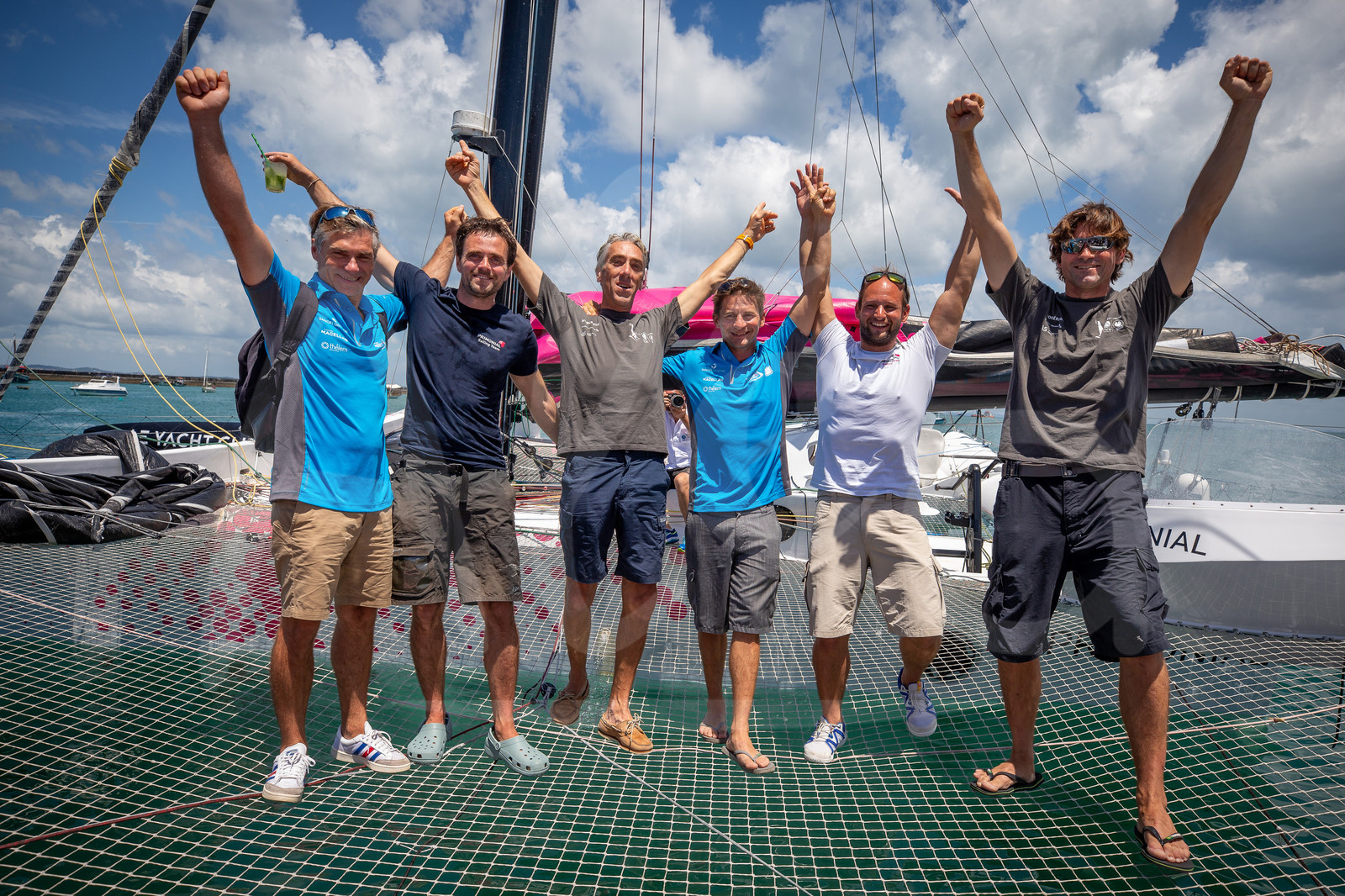 | Description | SALVADOR DE BAHIA, BRAZIL - NOVEMBER 9: From left to right, Fred Duthil, Matthieu Souben, Gilles Lamire, Thibault Vauchel-Camus, Sebastien Rogues, Antoine Carpentier are the skippers on podium of the Multi 50 category of the Transat Jacques Vabre 2019, duo sailing race from Le Havre, France, to Salvador de Bahia, Brazil, on November 9, 2019 in Bahia, Brazil. (Photo by Jean-Marie Liot/Alea) |