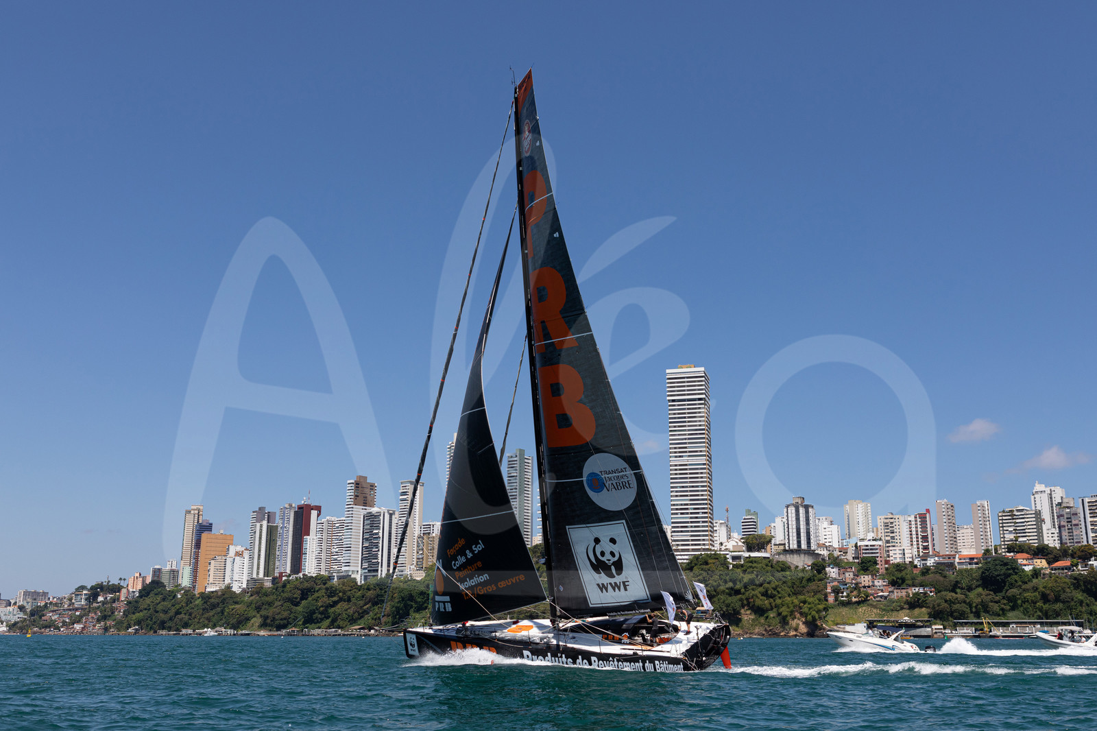| Description | SALVADOR DE BAHIA, BRAZIL - NOVEMBER 10: PRB skippers Kevin Escoffier and Nicolas Lunven take 2nd place of the Imoca category of the Transat Jacques Vabre 2019 on November 10, 2019 in Bahia, Brazil. Transat Jacques Vabre is a duo sailing race from Le Havre, France, to Salvador de Bahia, Brazil. (Photo by Jean-Marie Liot/Alea) |
