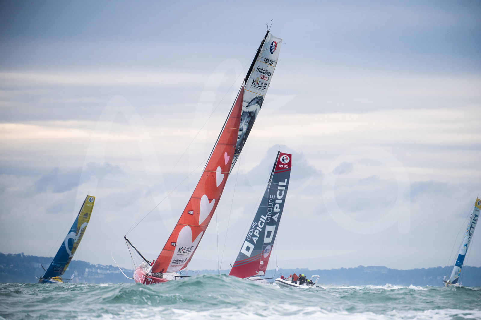 | Description | LE HAVRE, FRANCE - OCTOBER 27: Imoca Initiatives Coeur competes during start of the Transat Jacques Vabre 2019, duo sailing race from Le Havre, France, to Salvador de Bahia, Brazil, on October 27, 2019 in Le Havre, France. (Photo by Jean-Louis Carli/Alea) |