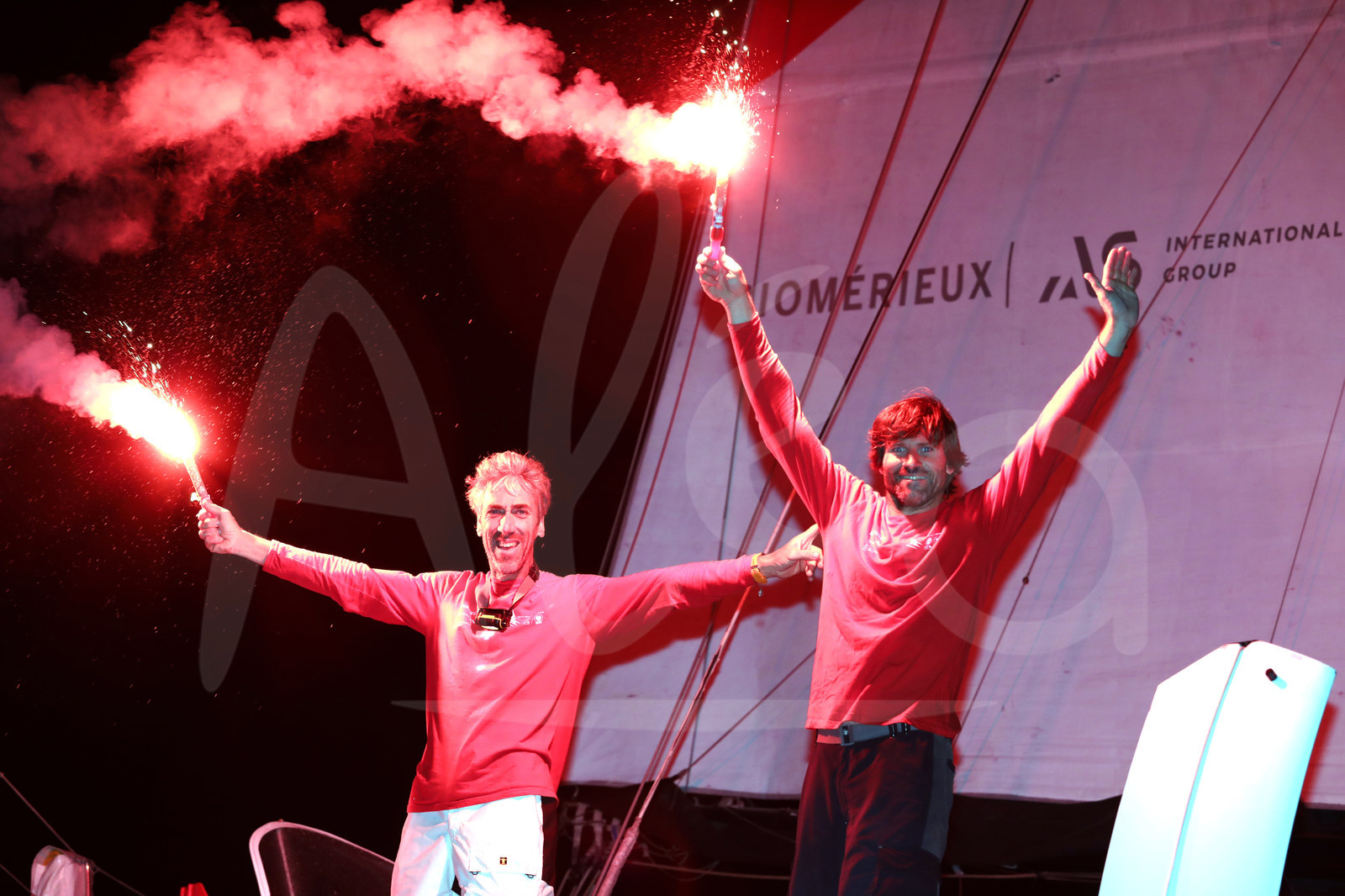 | Description | SALVADOR DE BAHIA, BRAZIL - NOVEMBER 8: Groupe GCA - Mille et Un Sourires skippers Gilles Lamire and Antoine Carpentier win the Multi 50 category in 11d 16h 34mn 41s of the Transat Jacques Vabre 2019, duo sailing race from Le Havre, France, to Salvador de Bahia, Brazil, on November 8, 2019 in Bahia, Brazil. (Photo by Jean-Marie Liot/Alea) |