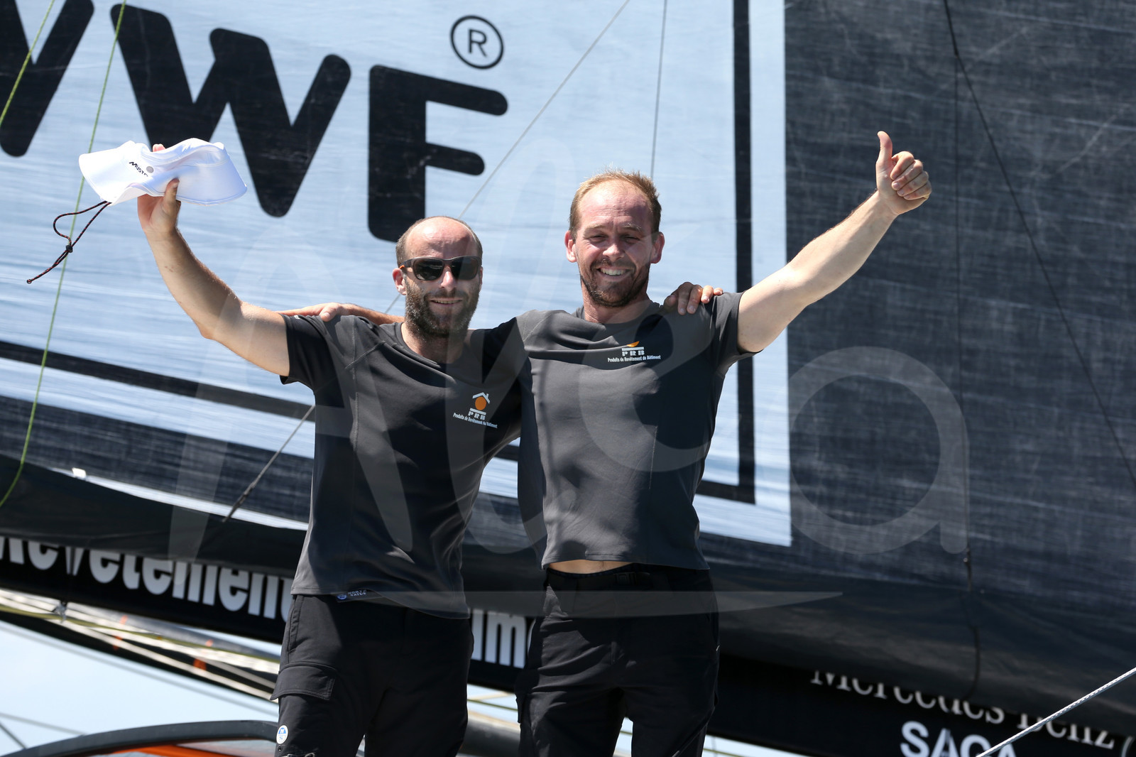| Description | SALVADOR DE BAHIA, BRAZIL - NOVEMBER 10: PRB skippers Kevin Escoffier and Nicolas Lunven celebrate taking 2nd place of the Imoca category of the Transat Jacques Vabre 2019 on November 10, 2019 in Bahia, Brazil. Transat Jacques Vabre is a duo sailing race from Le Havre, France, to Salvador de Bahia, Brazil. (Photo by Jean-Marie Liot/Alea) |
