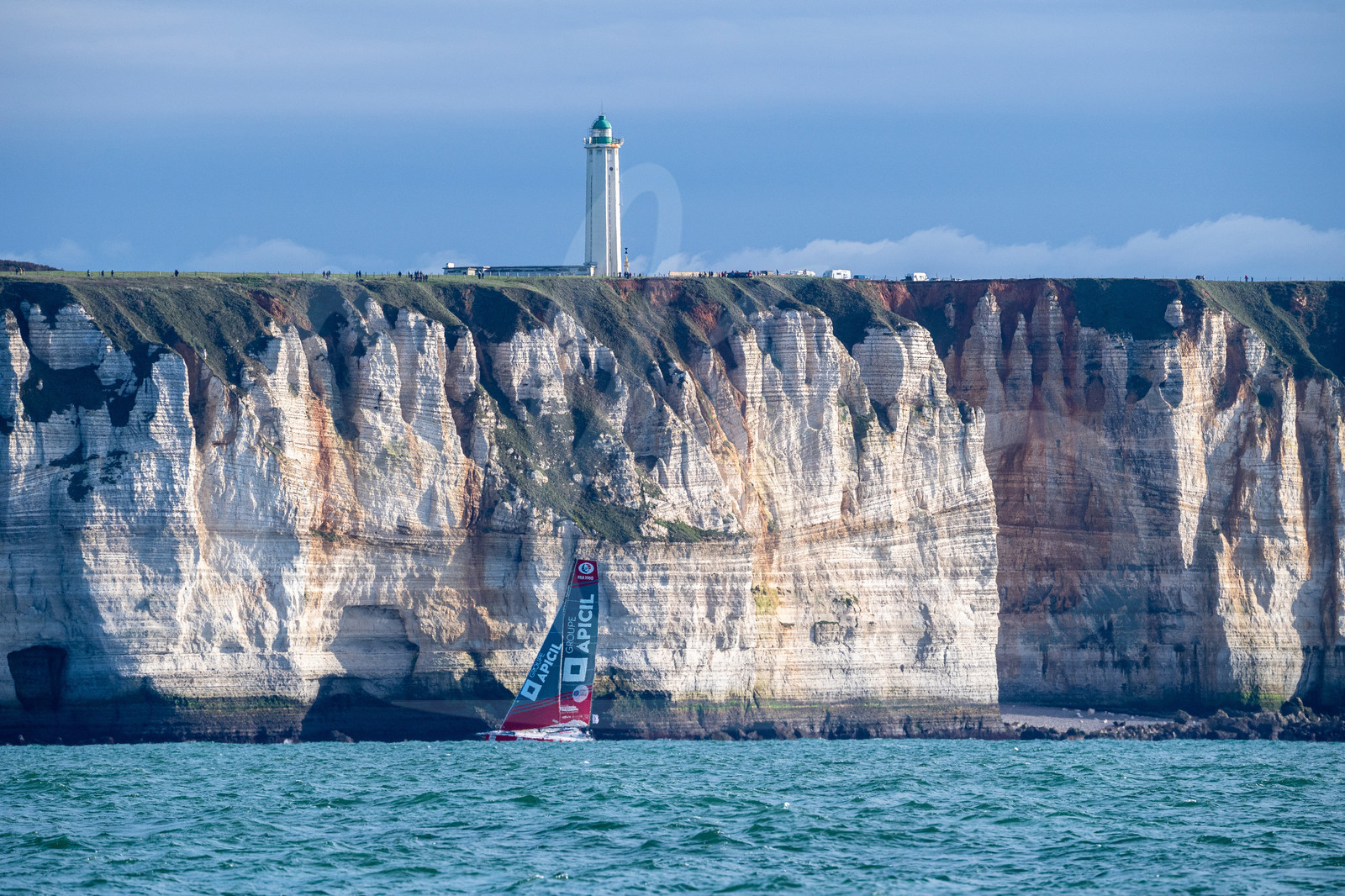 | Description | LE HAVRE, FRANCE - OCTOBER 27: Imoca Groupe Apicil competes during start of the Transat Jacques Vabre 2019, duo sailing race from Le Havre, France, to Salvador de Bahia, Brazil, on October 27, 2019 in Le Havre, France. (Photo by Jean-Louis Carli/Alea) |