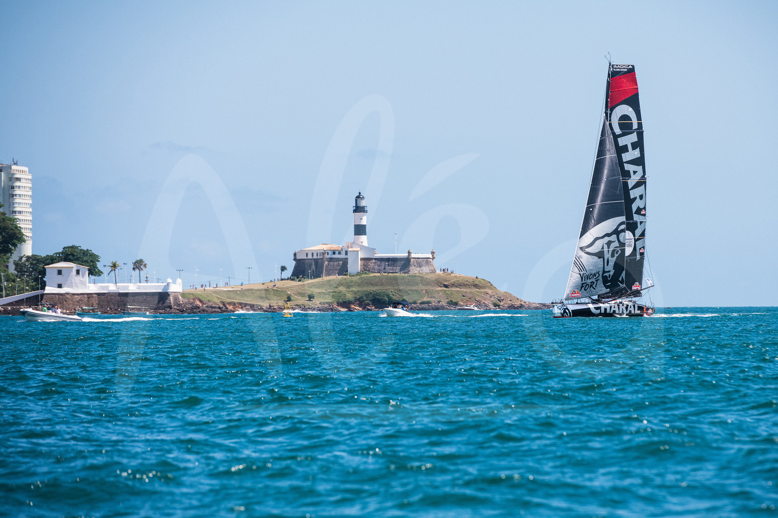 | Description | SALVADOR DE BAHIA, BRAZIL - NOVEMBER 10: Charal skippers Jeremie Beyou and Christopher Pratt take 3rd place of the Imoca category of the Transat Jacques Vabre 2019 on November 10, 2019 in Bahia, Brazil. Transat Jacques Vabre is a duo sailing race from Le Havre, France, to Salvador de Bahia, Brazil. (Photo by Jean-Louis Carli/Alea) |
