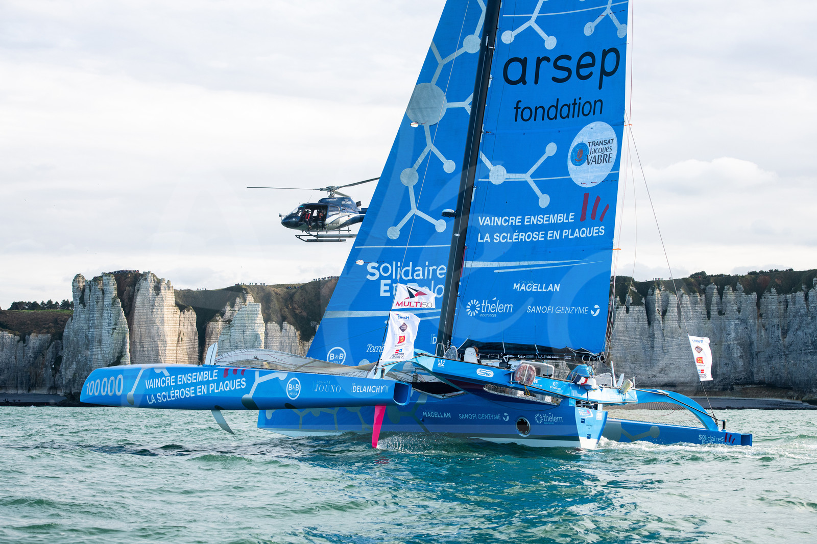 | Description | LE HAVRE, FRANCE - OCTOBER 27: Multi 50 Solidaires en Peloton - Arsep, skippers Thibault Vauchel-Camus and Fred Duthil, competes during start of the Transat Jacques Vabre 2019, duo sailing race from Le Havre, France, to Salvador de Bahia, Brazil, on October 27, 2019 in Le Havre, France. (Photo by Jean-Louis Carli/Alea) |